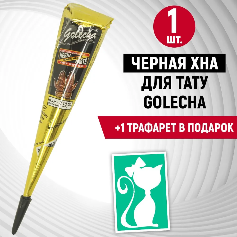 Чёрная классическая хна для тату и мехенди от Golecha 1 шт. + 1 трафарет
